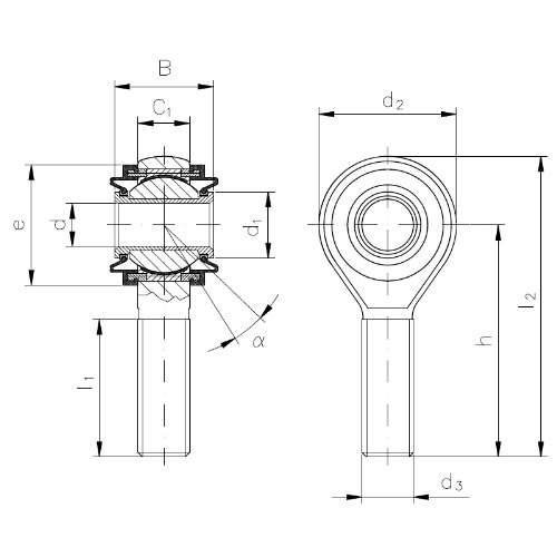 d1 | d2 | e | h | l1 | l2= | Yük katsayılarıC0 statik | Eğim açısı | Ağırlık |
