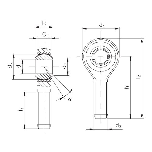 d2 | dk | h | l1 | l2 | C0 Statik yük katsayısı Standart -V -L |