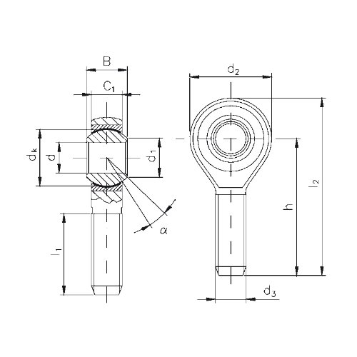 d2 | dk | h | l1 | l2 | C0 Statik yük katsayısı Standart -V -L |
